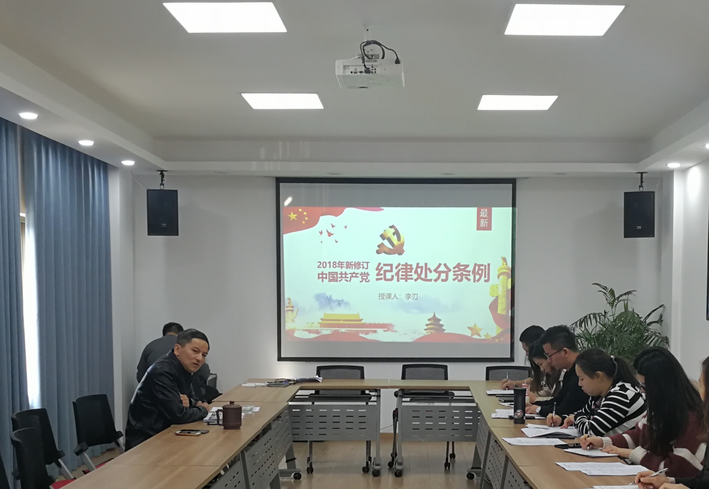凭证上级文件要求及集团纪检事情聚会精神,,,,,南昌城投运营治理有限公司党支部于11月30日下昼在公司纪律课堂召开《中国共产党纪律处分条例》专题学习会,,,,,公司纪检分担向导李刃同志作为主讲人,,,,,通过对纪律处分条例制订的意义及要求、条例修订后的八大亮点、不忘初心切记使命怎样认真遵照执行、纪律处分条例内容解读四个部分举行解说,,,,,指导公司全体纪检监察干部、党员及入党起劲分子认真学习掌握《中国共产党纪律处分条例》。。。。。