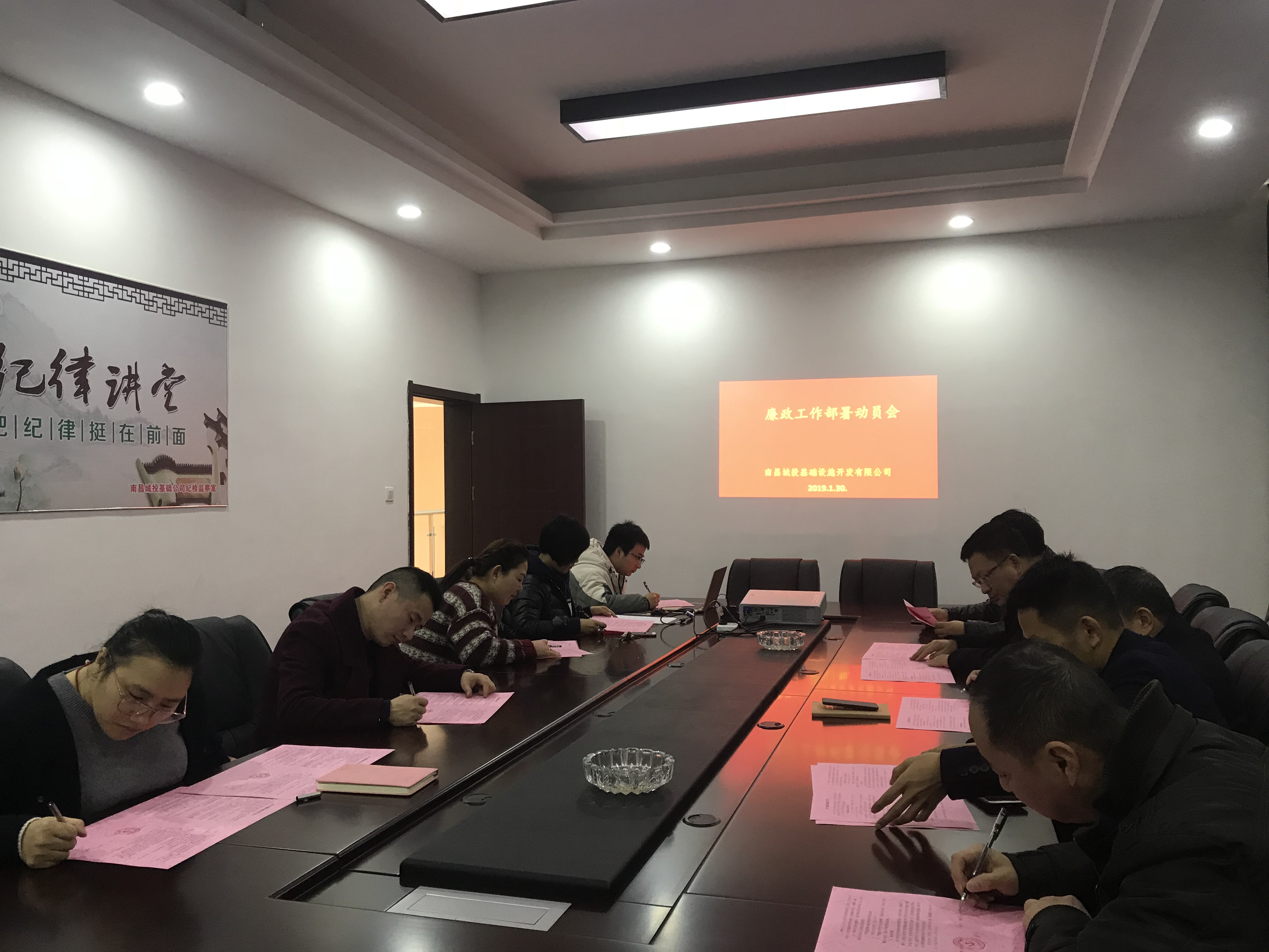 1月30日下昼,,,,,基础公司召开廉政事情安排发动会,,,,,会上基础公司纪检委员郑强华转达了1月23日集团纪委事情聚会精神,,,,,并由基础公司董事长、支部书记刘财旺与所有向导干部签署了廉政建设责任书。。。。。要求所有向导干部认真推行“一岗双责”,,,,,以上率下,,,,,真正做到意识入脑、纪律入心、责任上肩,,,,,春节时代要严酷遵守中央八项划定精神,,,,,坚决阻挡“四风”,守住廉政底线,,,,,不触廉政红线。。。。。